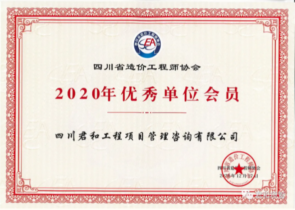 日前,四川省造价工程师协会为“2020年优秀单位会员”颁发了荣誉证书。