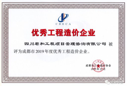 2019年的工程造价行业充满着变革与挑战,四川君和凭借扎实的专业实力和稳健的服务能力,经过成都市工程造价协会各专家领导的认真评审:我司在此次评选活动中,被成都市工程造价协会评为“成都市2019年度优秀工程造价企业”
