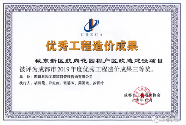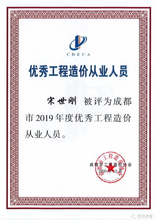 喜报连连,成都市2019年度优秀工程造价企业、优秀工程造价从业人员、优秀工程造价成果荣誉奖章也如期而至。